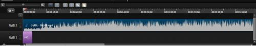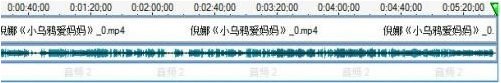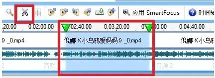 5、由于这里的视频是含有音频的,导入的视频不包含音频,可以自己添加音频文件,音频文件同样使用拖拽的方法,但是要拖拽到视频下方的音频轨道上。如果觉得视频哪里不需要,需要剪掉,可以先在轨道上选择区间,随后点击工具栏上的小剪刀即可