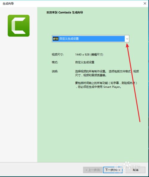 6、会看到如下国所示的下拉菜单。选择要保存的文件格式,点击“下一步”。