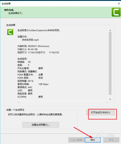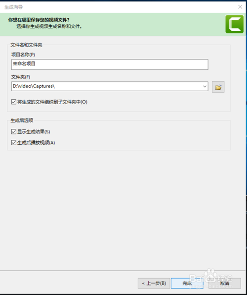 7、接下来设置好保存的文件目录,点击“完成”即可。
