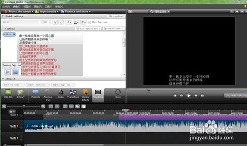1、在网上或其他地方找到自己需要的音乐字幕并复制,粘贴在Camtasia Studio的captions框中。