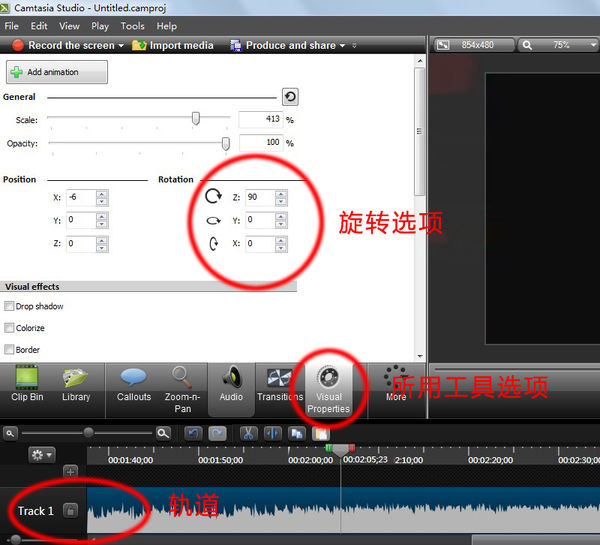 camtasia studio汉化版怎么旋转视频?
