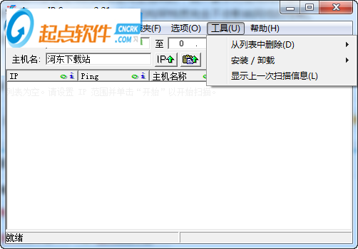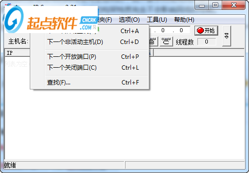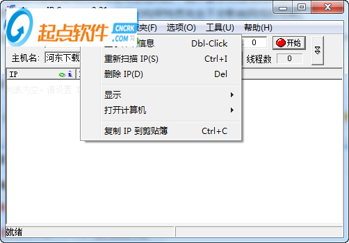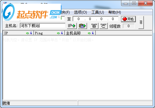 1、启动IPScan,在“IP范围”文本框中输入起始IP和终止IP,单击其窗口中最右边的“开始”按钮即可