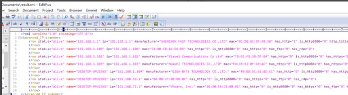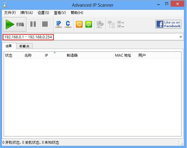1、在本站下载ipscan(ip端口扫描工具)解压后运行exe文件,进入ipscan主界面,启用扫描,某次扫描结果显示如下
