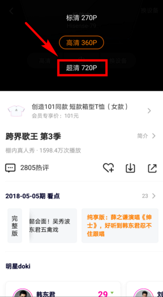 9、点击高清后,会看到图示的列表,列表中有三种清晰度可以进行选择,需要那种就点击那种就可以了。