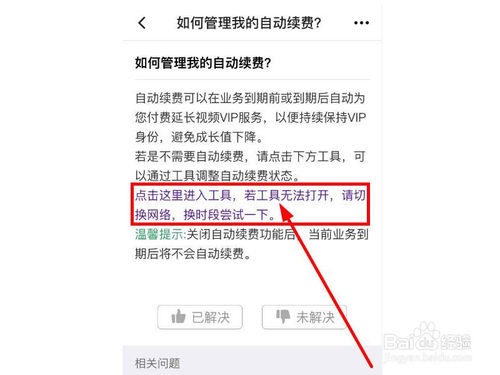 3、点击之后,弹出【如何管理我的自动续费】界面,这时会看见界面中有管自动续费的一些描述,可以忽略,直接点击【方框】中的文字;