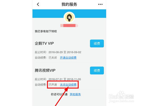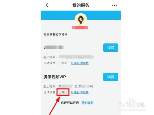 6、点击完成操作之后,回到【我的服务】界面,可以看到自己的腾讯视频VIP的自动续费功能,显示【已关闭】的状态。