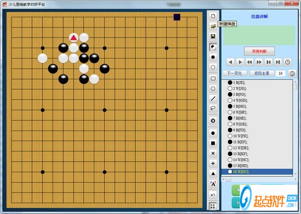 十三路对局的好处在于:完成这样一盘对局 所需时间比十九路期盘要少,小朋友更容易将一盘棋完整的下完,特别是十三路对局的收官相对简单,能够容易分辨是否完成对局。