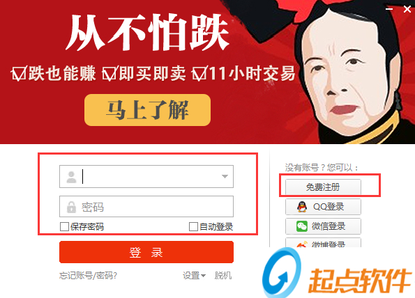 1、双击打开软件,打开登录页面,先单击【免费注册】输入相关信息,注册相关账号,然后在账号跟密码框输入相应信息登录系统,也可以先使用【游客登录】进入系统了解一下情况