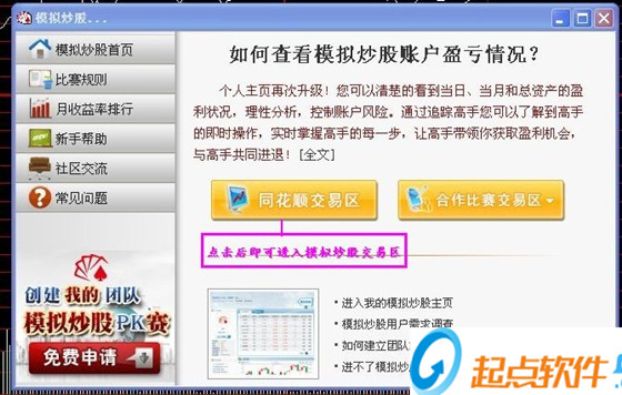 2)进入模拟炒股登陆界面后,选择“进入交易区”