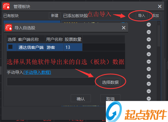 b.点击导入自选股,通过手动选择之前导出保存在桌面的数据