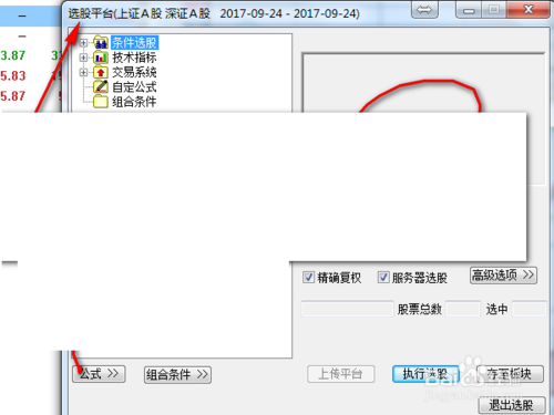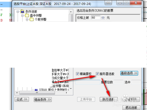 然后我们勾选服务器选股,这样数据是最新的,然后我们点击执行选股就ok了。