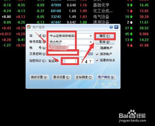2、在同花顺软件中也可以查询自己的账户信息:在同花顺软件中选择委托下单,在弹出的窗口中,选择你开户的营业部名称(这点非常重要,你必须选择你开户的营业部,否则查不了,如果你的软件中不能选到你的营业部,那你就不能查),选择帐号类型,再输入你的帐号和密码,就可以看到你自己帐号的各种信息了。