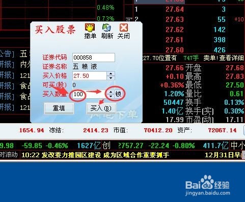 8、此时弹出买入股票窗口 可以通过调价滑块调节委托的买入价格。