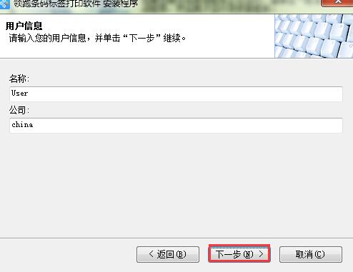 弹出的用户信息录入窗口,可以保持默认,或者是随意填写一些信息,只要不空白即可。点击下一步。