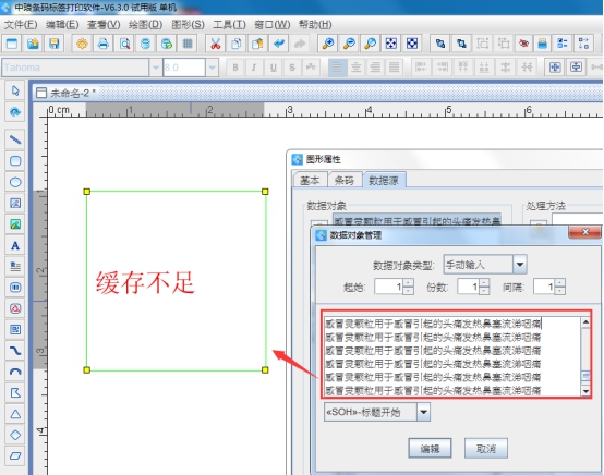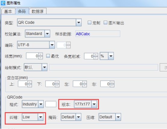 QR Code二维码默认的版本是Default,纠错默认的是Medium。如果内容较多,Default版本会显示缓存不足。为什么会显示缓存不足呢?那是因为版本低,容纳量小。如果数据源中添加内容超出版本所承受的容量,就会提示缓存不足。