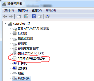 4、可以看到“非即插即用驱动程序”一项。单击这一项。