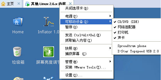 加载无线网卡:虚拟机上面右击--可移动设备--找到你的无线网卡,对第一个“与主机断开或连接”进行点击一下;
