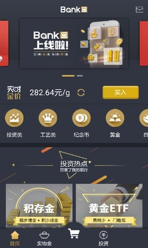Bank金app是江南农村商业银行联合国内多家农商行机构共同打造的互联网综合黄金投资平台,支持200多家银行卡绑定,集积存金投资、实物黄金消费、黄金ETF投资等一站式全方位黄金投资业务。让您足不出户即可享受在线购买黄金、快递到家的便捷消费体验。