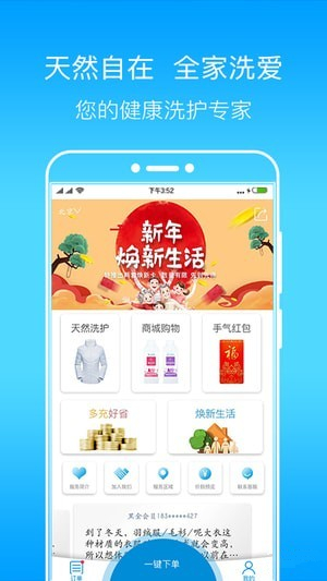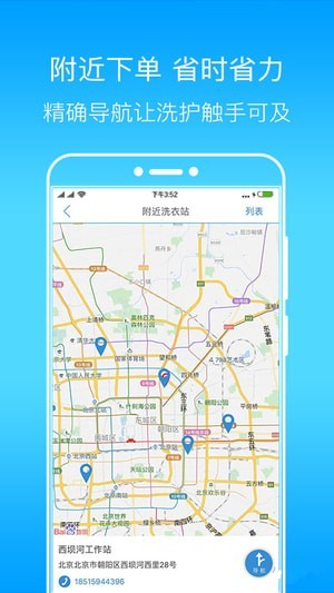 手机洗衣下单,一键即达,上门洗衣送取,就近线下车端接单。