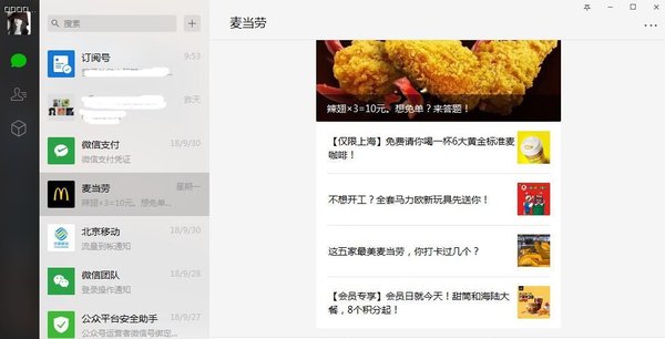 7. 微信主界面以侧边栏形式展示聊天联系人,与网页左右并存。