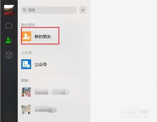 在微信电脑版的通讯录中我们可以看到群聊和好友,当然了加好友新的朋友得图标也在上面,点击一下加新的朋友。然后就没有然后了,右侧不显示任何内容,说明我们不能通过搜索的方式加好友。