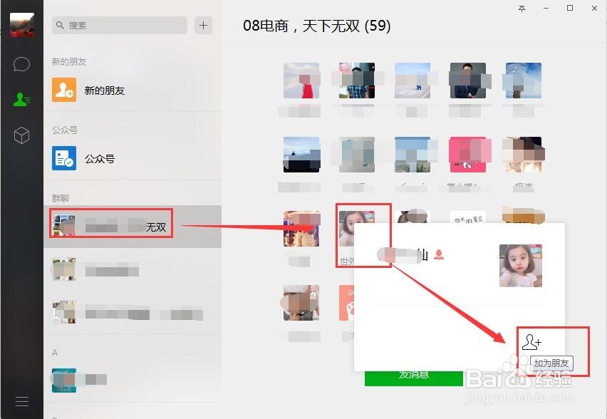 但是我们可以加下方群聊中的陌生好友,点击群聊中的一个好友。