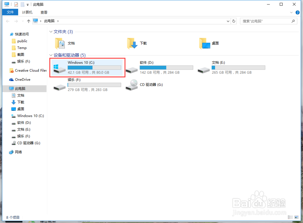 打开我的电脑,找到C盘双击进入电脑系统分区。