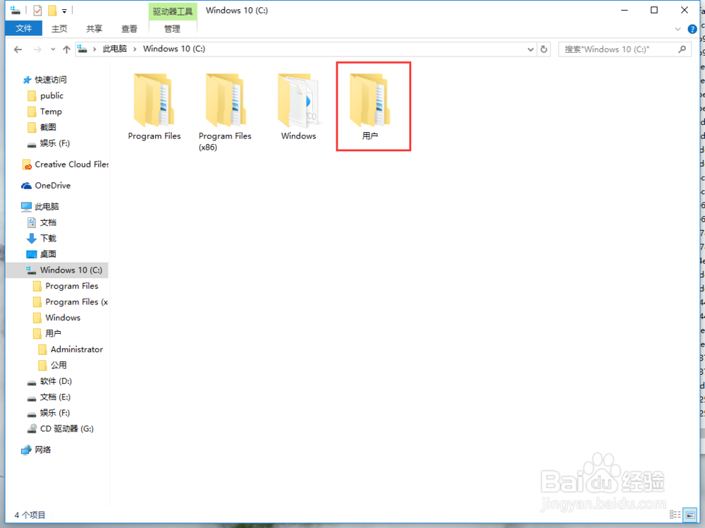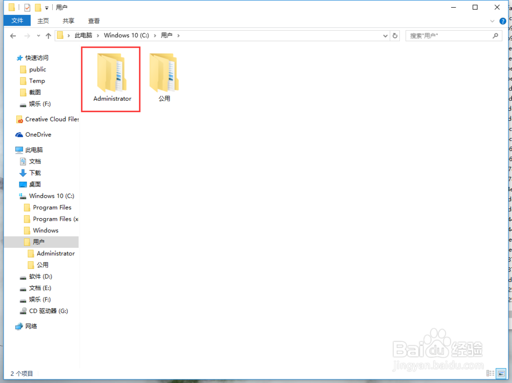 进入【用户】文件夹后,找到名为【Administrator】的文件夹,点击进入。