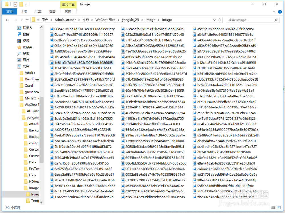 然后返回【Wechat Files】文件夹,打开【Image】文件夹,在里面还有一个【Image】文件夹,点击进入后,就看看到所有图片列表,微信电脑端里所有的图片都在这个文件夹中。