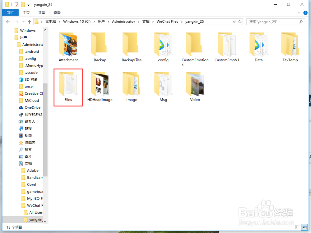 然后返回【Wechat Files】文件夹,打开【Files】文件夹,微信电脑端接收的所有Word文档、Excel表格等文件都会自动接收到【Files】文件夹中。