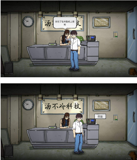 1.来到公司,和女接待对话,触发打卡剧情