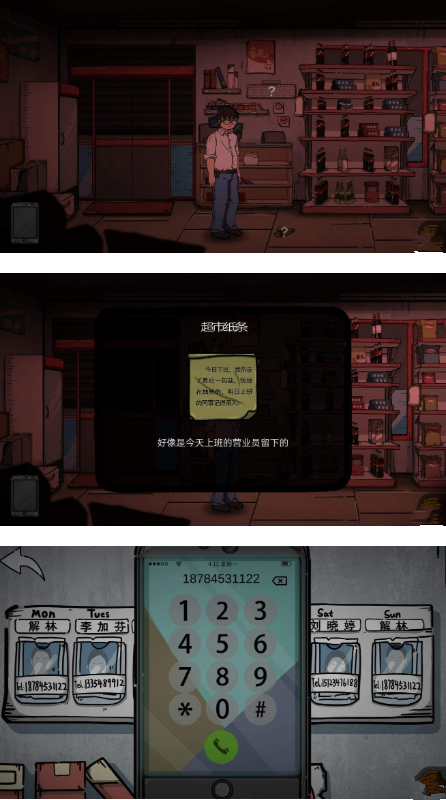 4.超市里地上的纸条超市最后一袋盐被同事拿回了家,而墙上有员工的电话,给他打电话,根据日期,推算出为第一个人,打电话过去,发现一直是开关灯的声音,推算出,这个人和你住一栋楼,并且他的家一定在闪烁着灯光