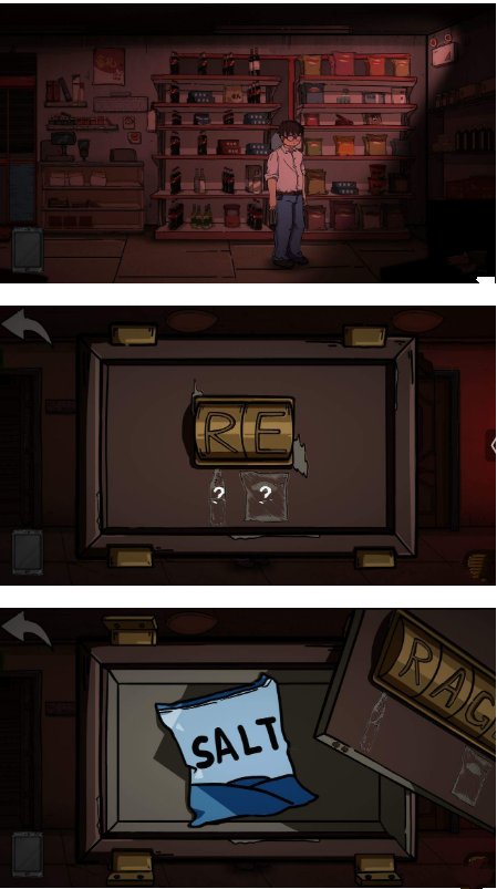 6.根据提示,密码为两种物品在超市的摆放位置组成的字母图案RE,得到盐