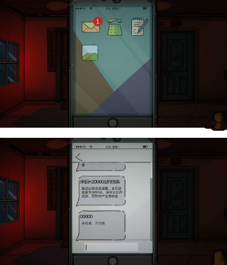 5.果然,你回到楼下。发现302的灯光闪烁,上去敲门,掉出箱子