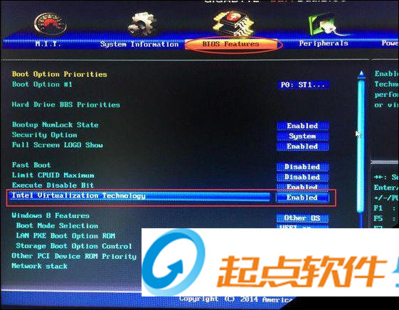 (1)使用方向键→,←移动光标到BIOSFeatures选项。