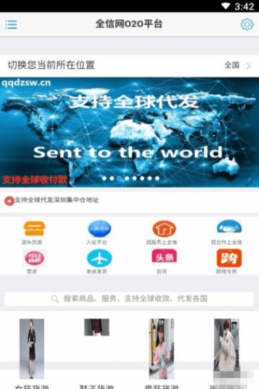 全信网平台,全球o2o互联网+实体供应链全球配送上门,真实档口源头厂家一件代发