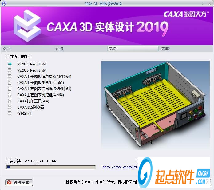 2、检查完成,进入到CAXA实体设计2019安装界面,选择安装语言,默认中文简体,点击“下一步”