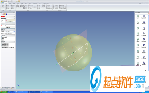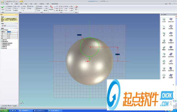 4、继续选择XY平面为草绘图平面,进入草绘界面,然后按快捷键F10激活三维球工具,利用三维球将草绘平面往垂直远离球心方向移动65,如图。