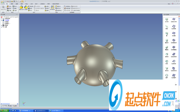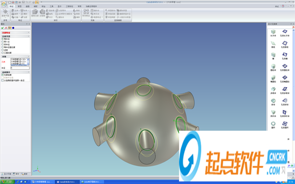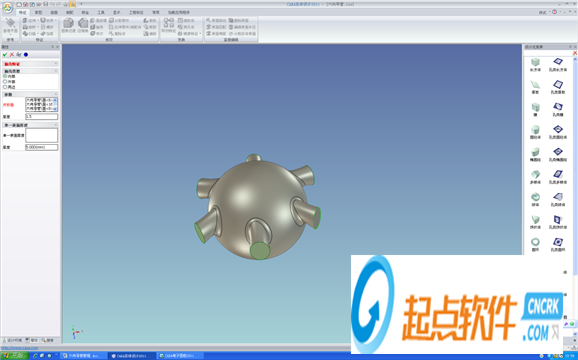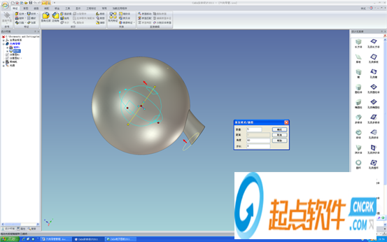选择角度选择360°,选择增料,预览生成一个如下图的球体,如图。