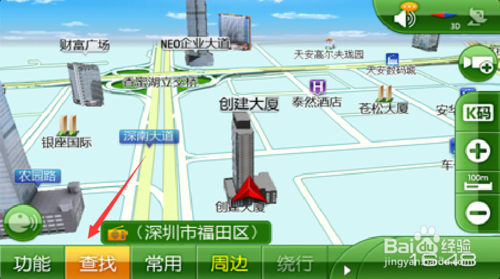 第一步:查询您的导航设备相关信息1、打开凯立德移动导航系统,进入地图界面,点击“查找”。