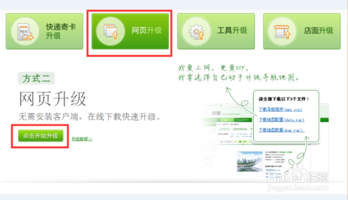 待进入“凯立德官方网站”后,切换到“地图升级”-“网页升级”选项界面。