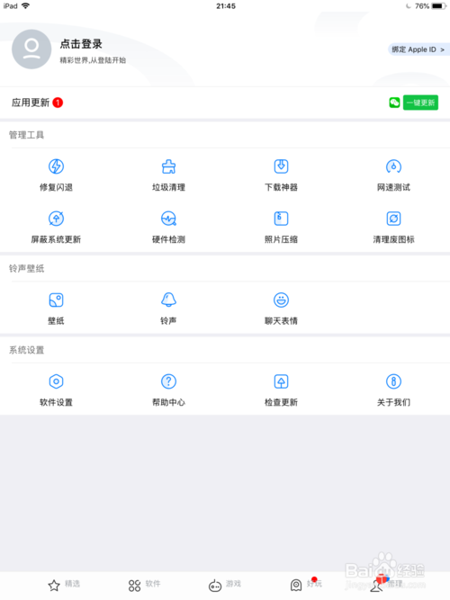 2、接着在PC端,点击上方的“铃声壁纸”,就可以选择很多不同类型的壁纸,下载到Ipad上啦。很方便哟。每天不重样的壁纸都可以。