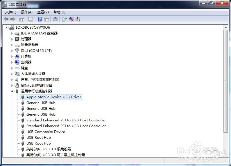 Windows 7:用户请右键点击【我的电脑】—属性—设备管理器—通用串行总线控制器—Apple Mobile Device USB Driver,有没有叹号,如果有,请右键更新驱动。