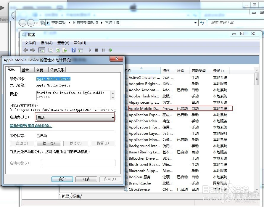 ②.打开'服务(本地),寻找到“AppleMobile Device”,双击打开。