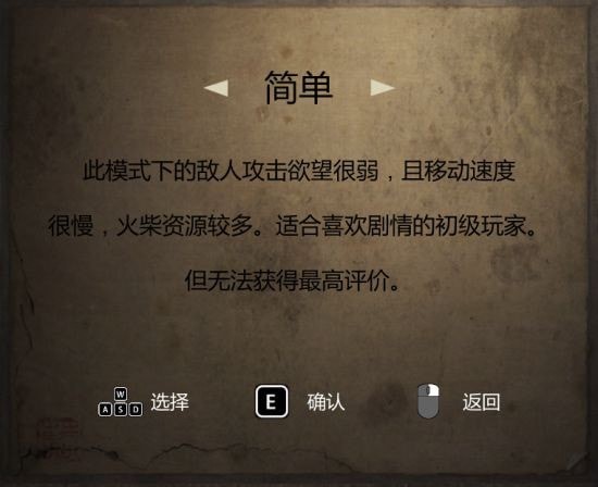 点击新游戏后会有简单、普通、噩梦三个难度选择:
