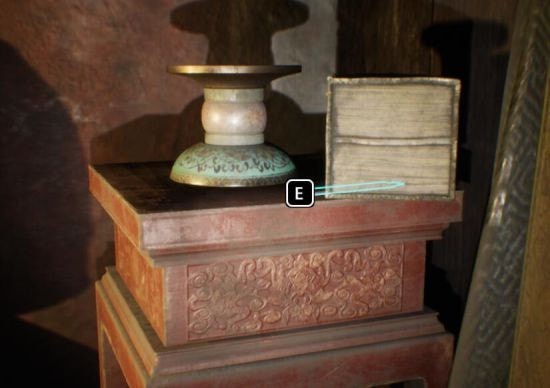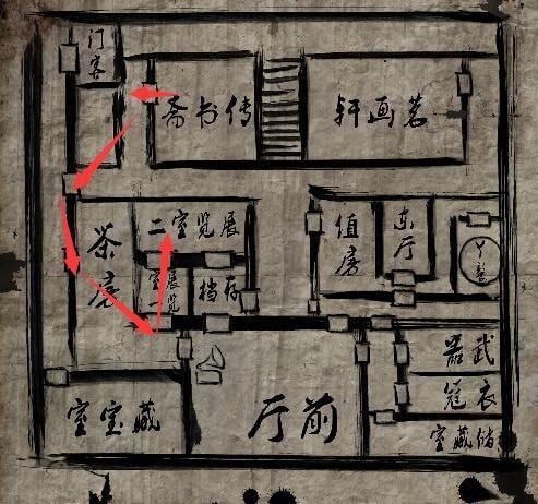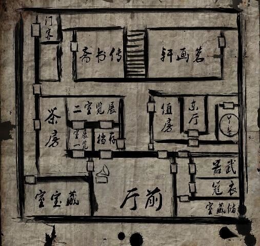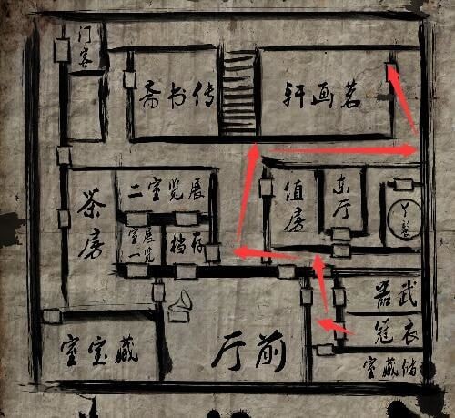 9.爆竹谜题:先用破花瓶在第一次遇见鬼的房间里接水开启密室看到爆竹,在后期传书斋的房间里拿到假爆竹后与之前的进行替换,再在传书斋里寻找到两幅画,利用画+爆竹+火柴引爆新的房间。