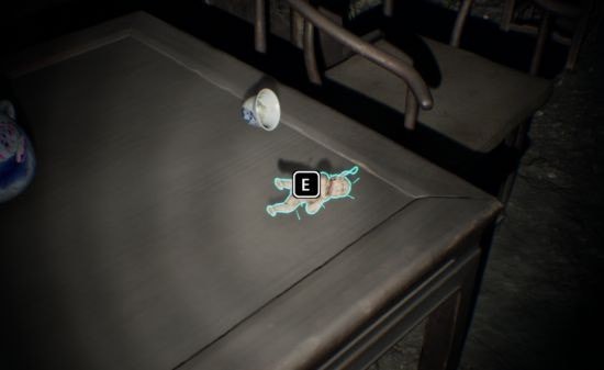 之后前往茶房,打开柜子找到陈妈的纸人,使用念珠封印,然后在旁边桌子拿到钥匙