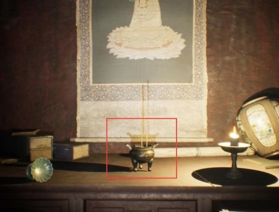 进入存档室后,香案上可以拿到诅咒娃娃二、火柴,用火柴将蜡烛点亮,香炉可以存档