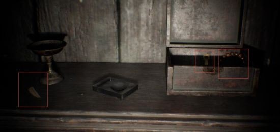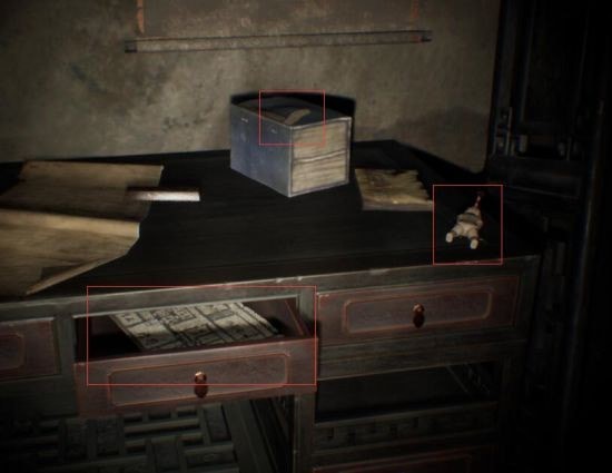 香案上有火柴、座钟(触发陈妈攻击)、带锁的小盒子