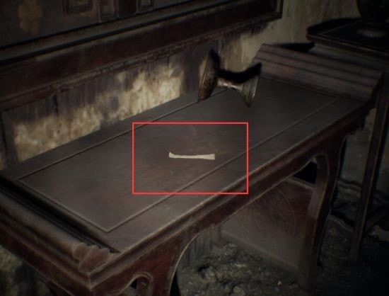 长条桌上有虎头铃文献和陈妈的衣服(使用触发陈妈攻击),旁边花架上有空花瓶